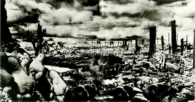 When the protagonist of The Great Disharmony of Mankind enters the fair grounds early one morning, he discovers a thatched hut with a dead child lying outside. A hastily scrawled sign advertises the hut as the My Lai Pavilion. This is a reference to the 1968 My Lai massacre, a war crime perpetrated by the US Army on unarmed Vietnamese civilians. Upon venturing inside, the protagonist finds American soldiers gunning down women, children, and the elderly. When passing expo visitors are hit by stray bullets, the police demolish the hut, only to find it reappearing in different places each morning, whereupon the same bout of mass murder is recapitulated. Soon the Biafra Pavilion, referring to the secessionist state of Biafra that suffered extreme famine during the Nigerian civil war (1967-70), begins to appear each day, disgorging hordes of refugees who swarm the expo restaurants begging for food. When the international community expresses its indignation and appall, the Japanese government decides that the only response to the insult and inconvenience to other nations that the ghost pavilions represent is for Japan to insult and inconvenience itself by setting up its own ghost pavilion: the Nanking Massacre Pavilion!